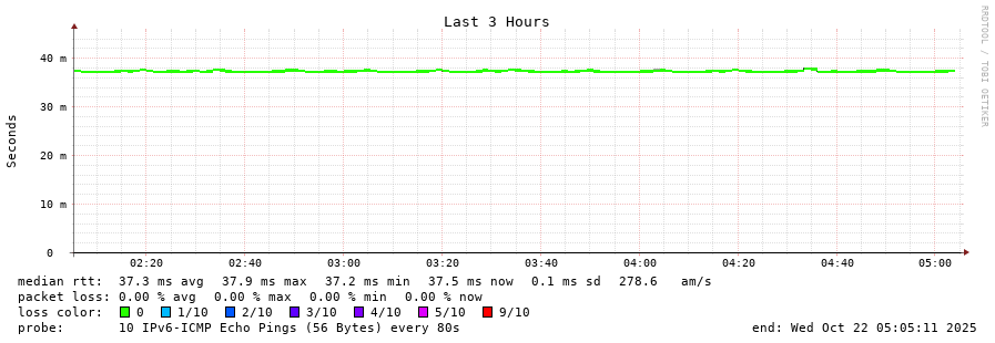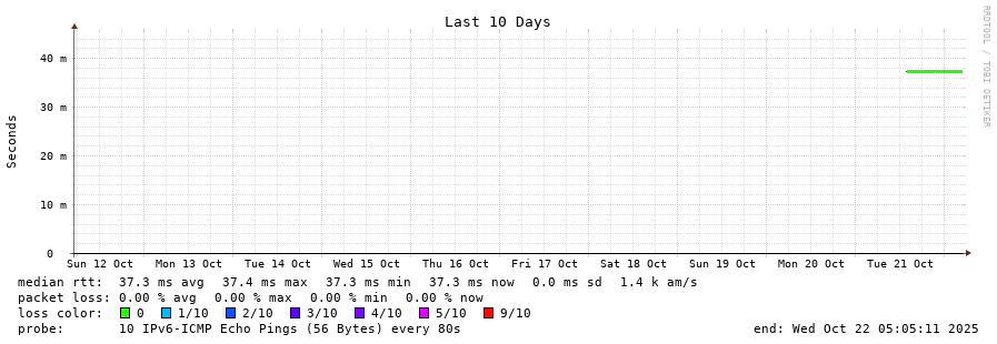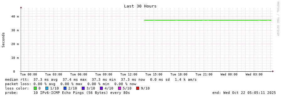 traceroute to 2001:b68:d::28 (2001:b68:d::28), 30 hops max, 80 byte packets - Generated at 2025-10-22 05:00:01