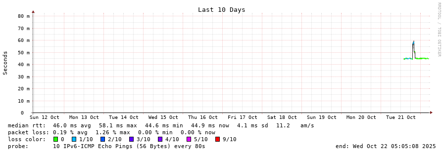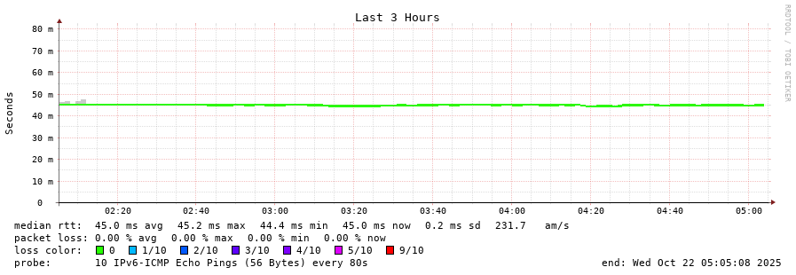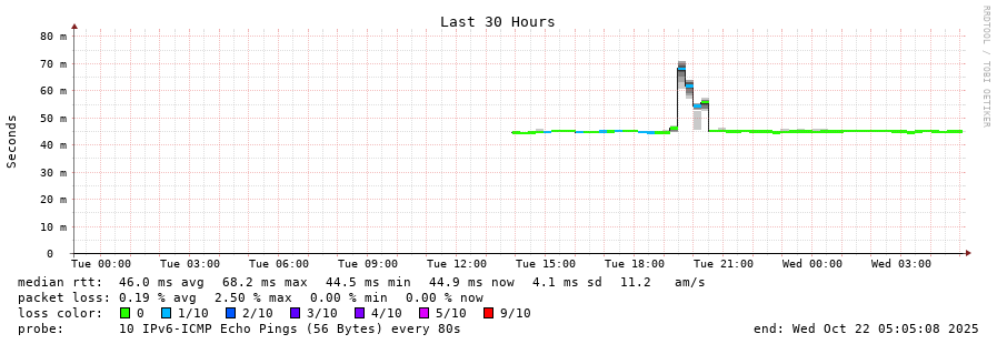 traceroute to 2a04:9dc0:0:a51::afaf:1 (2a04:9dc0:0:a51::afaf:1), 30 hops max, 80 byte packets - Generated at 2025-10-22 05:00:01