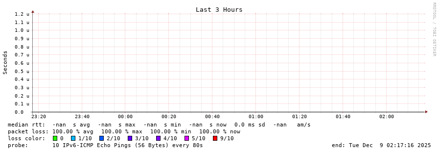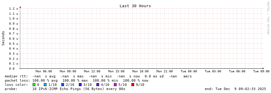traceroute to fd9b:f75:a3d5::2 (fd9b:f75:a3d5::2), 30 hops max, 80 byte packets - Generated at 2025-12-08 21:00:01 3 > 4 > 5 > 6 > 7 > 8 > 9 > 10 > 11 > 12 > 13 > 14 > 15 > 16 > 17 > 18 > 19 > 20 > 21 > 22 > 23 > 24 > 25 > 26 > 27 > 28 > 29 > 30 >