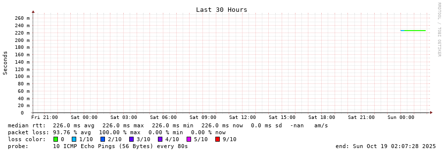 7 > 185.70.203.89 (185.70.203.89) [AS6762] 225.358ms 225.336ms 225.367ms