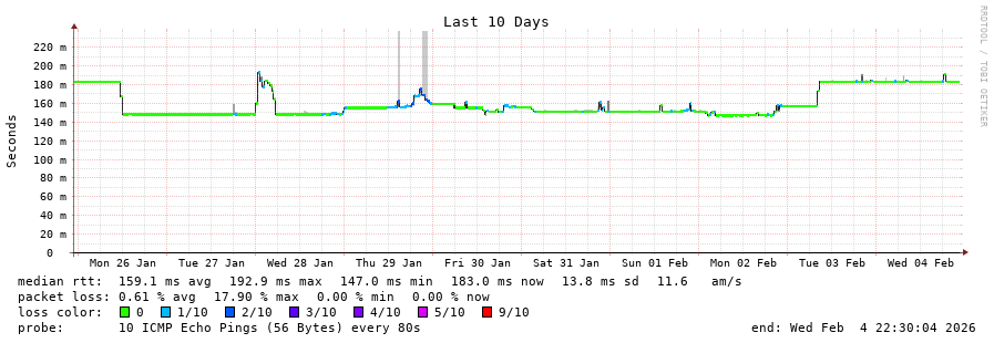 5 > port-channel2203.ccr92.lhr01.atlas.cogentco.com (154.54.74.6) [AS174] 5.086ms 5.094ms 5.117ms